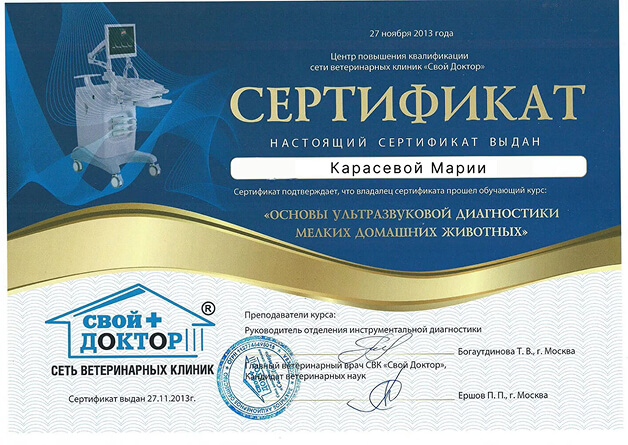 В нашей команде — терапевты, хирурги и специалисты по инфекционным заболеваниям. Каждый регулярно работает на выездах и сталкивается с различными клиническими случаями: плановые осмотры, хронические патологии, острые состояния. Профильное образование каждого нашего ветеринара подтверждено дипломами и действующими сертификатами.